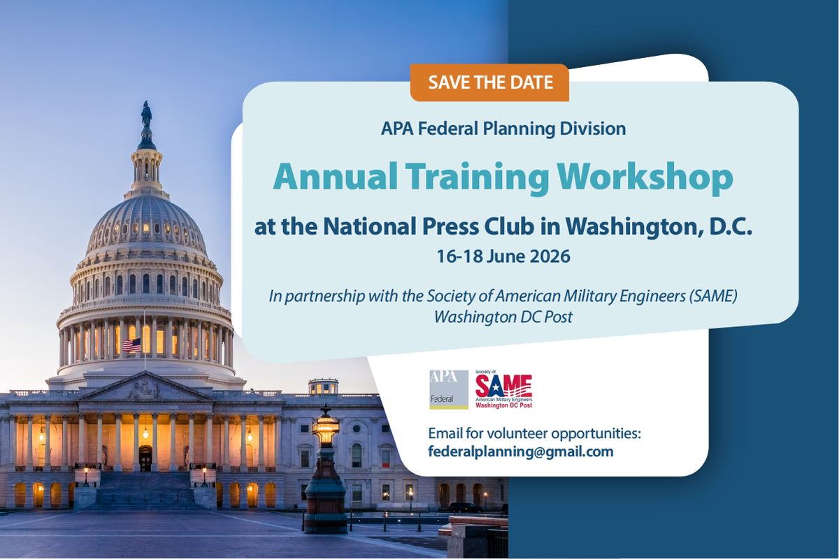The Federal Planning Division will hold its 2026 Annual Training Workshop in Washington, D.C. This effort will be held in partnership with the SAME Washington, D.C., Post. Be sure to monitor our social media channels (LinkedIn, Facebook, Instagram) for updates and be sure your membership is up to date so you receive our email communications.